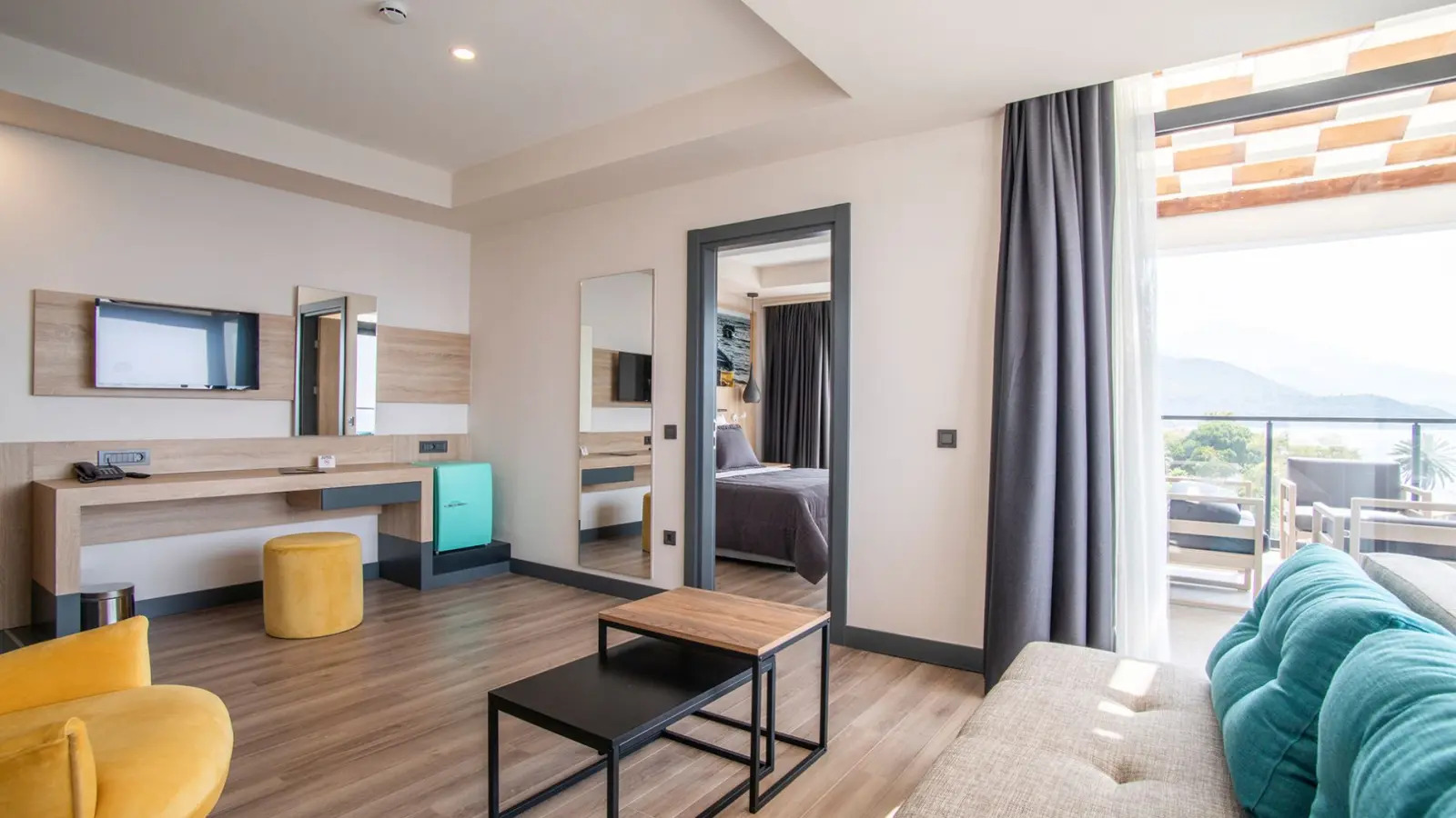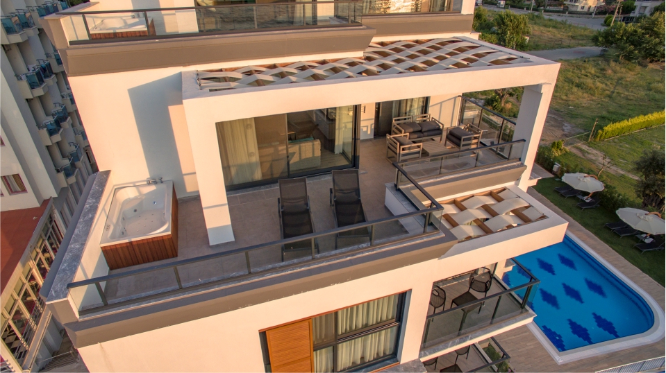 Denize sıfır konumu ve özel mavi bayraklı kum ve çakıl karışık plaji ile güneşin ve doğal güzelliklerin tadına varacaksınız.
